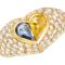 Bague cœur en or jaune, le centre serti d'un saphir jaune et bleu en forme...