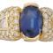 Bague en or jaune sertie au centre d'un saphir ovale pesant environ 3,04 ca...
