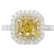 Belle bague en or bicolore à pans coupés sertie au centre d'un diamant jaun...