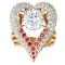 Bague en or jaune en forme de cur pavée de diamants (8/8) et de petits rubis ser...