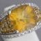 Bague en or ornée d'une citrine épaulée de citrines et de lignes de brillan...