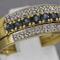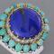Bague en or orné d'un cabochon de lapis dans un double entourage de cabocho...