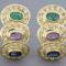 Paire de boucles d'oreilles en or ornées de rubis, de saphirs et d'éme...
