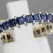 Bague en or ornée d'une ligne de saphirs épaulée de deux lignes de brillant...