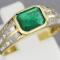Bague en or ornée d'une émeraude épaulée de lignes de diamants carrés et de...
