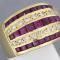 Bague en or ornée de trois lignes de rubis calibrés retenant deux lignes de bril...