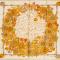Must de CARTIER Carré en soie imprimée jaune à motif de joaillerie, liseré orang...