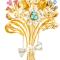 Importante broche "bouquet" en or bicolore agrémentée de turquoises e...