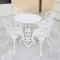 Mobilier de jardin en fer forgé peint comprenant une paire de tables circulaires...