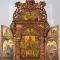 Tryptique en bois sculpté et ajouré de motifs végétaux stylisés surmonté d’un fr...